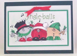 As cardmakers, I think we all know that now is the time to get ready for Halloween, Thanksgiving, and Christmas, not only for our personal card use, but to send to the troops overseas, which requires extra time for the mail to get to them, and for them to write and send the cards home. The mid-week throwdown challenge at OWH this week is Christmas in July and was a great idea, as well as a nice cooling thought during this hot summer. Here's the first card to get me rolling: